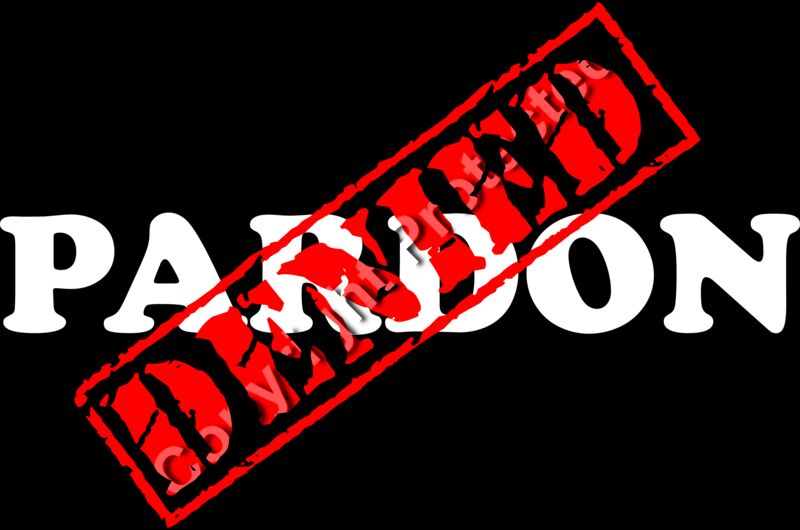 PARDON DENIED - white text red stamp. Parole is applied for but is denied.