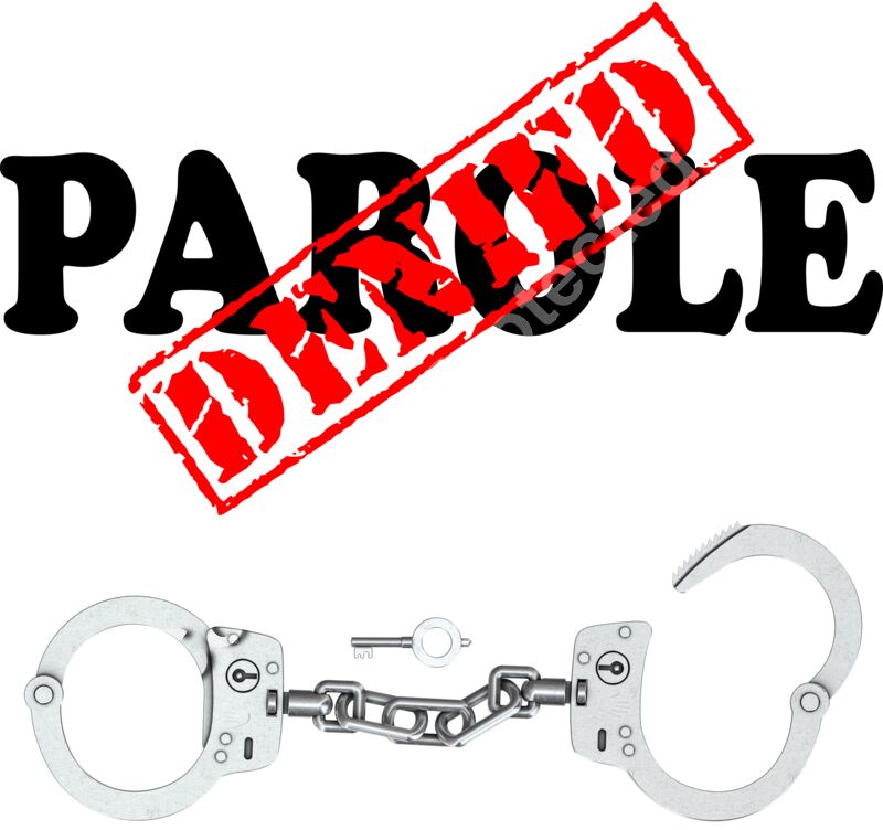 PAROLE DENIED WITH HANMDCUFFS - black text red stamp